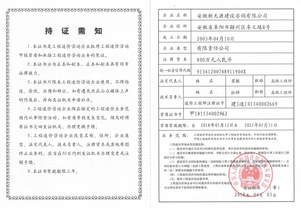 工程造價咨詢企業甲級